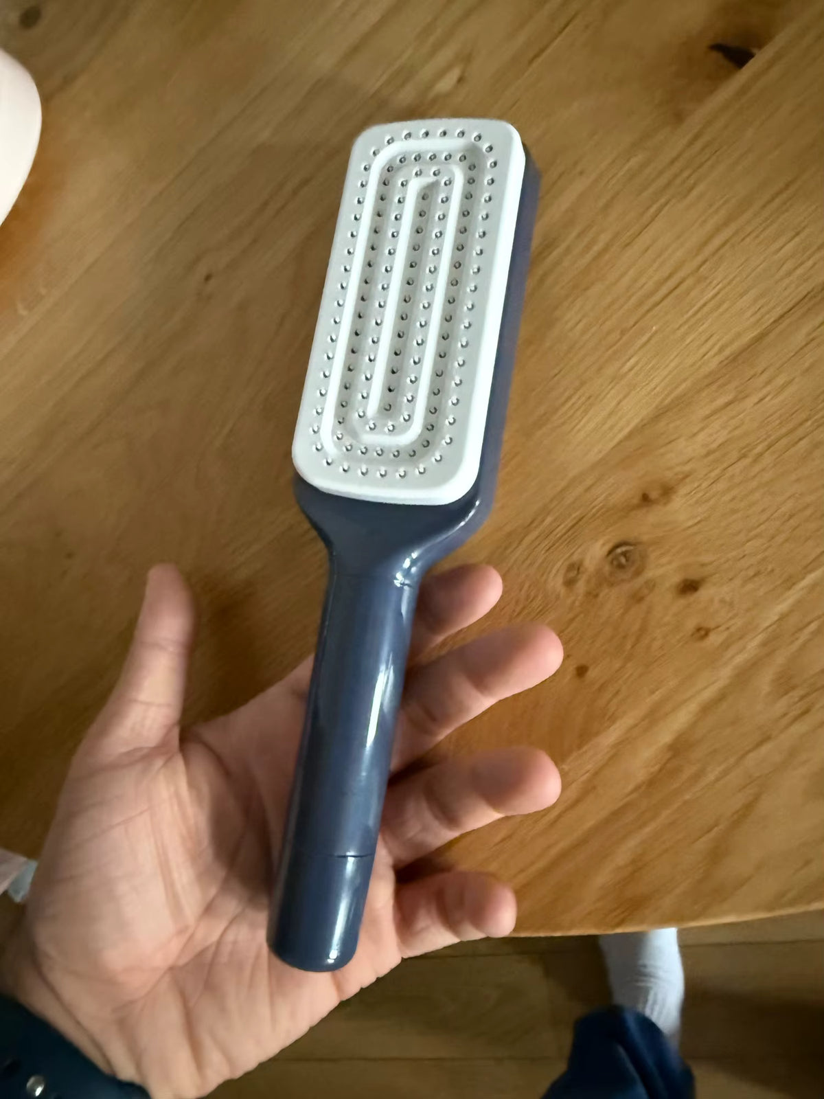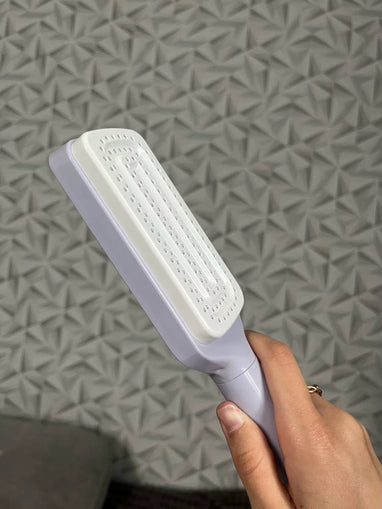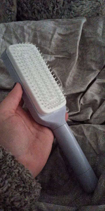 Answer 1: The rotating handle retracts and pushes out hair with one twist. It’s designed to keep your brush spotless in seconds without needing tools or water.
